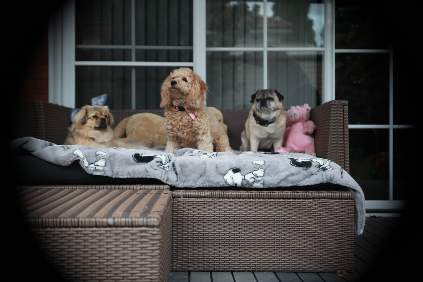 To the Left of the deck is a dog splash pool (available only in summer) that leads to an area for zoomies - all areas are securely fenced.